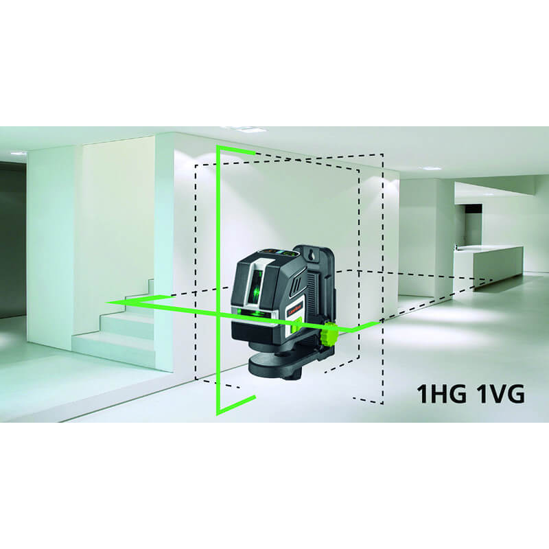 – Specijalne ZELENE laserske diode visokih performansi projektuju 2 lako vidljive laserske linije. (1 vertikalna + 1 horizontalna).